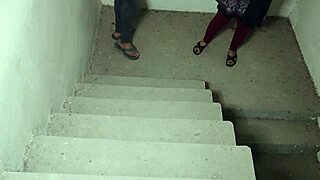 Stepbrother rams big-titted stepsis pussy rough on stairs closeup moaning.