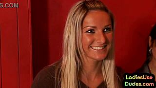 Femdom babes quiver with lust pegging guy's asshole using bottles
