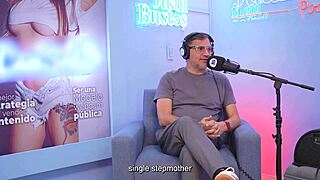Cristina Vega grinds her clit hard on fuck machine during Juan Bustos podcast webcam show